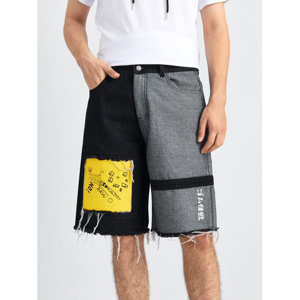 Men Patch Detail Raw Hem Denim Shorts 2022 Xl 12 Multicolor F058d Walmart Com
