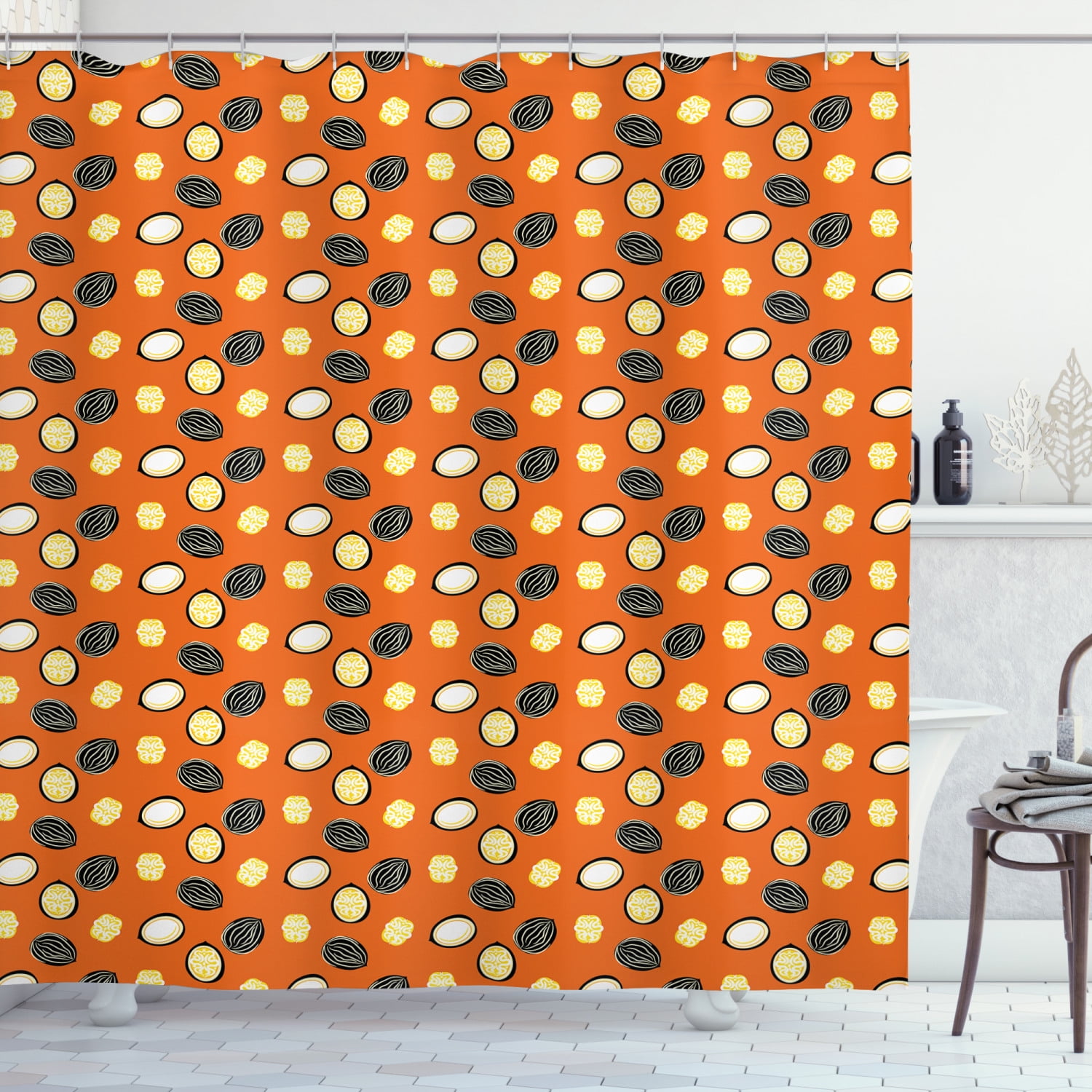 Abstract Shower Curtain Pattern Of Walnut Organic Snacks Raw Appetizers Nuts Healthy Living Fabric Bathroom Set With Hooks 69w X 75l Inches Long Mustard Vermilion Cream By Ambesonne Walmart Com